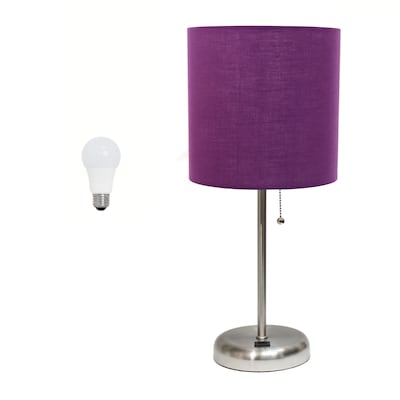 Creekwood Home Oslo 19.5" LED Table Lamp, Brushed Steel/Purple Shade (CWT-2012-PR-LB)