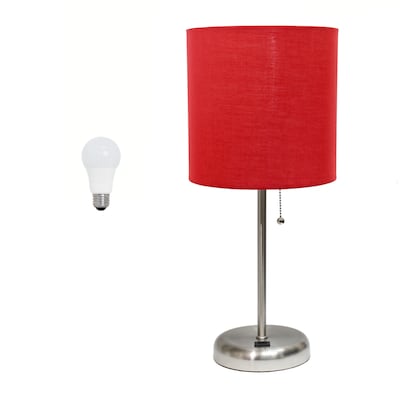 Creekwood Home Oslo 19.5" LED Table Lamp with USB Port, Brushed Steel/Red Shade (CWT-2012-RE-LB)