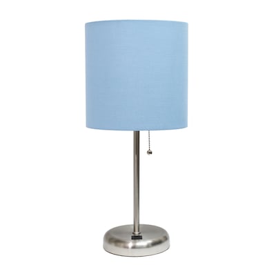 Creekwood Home Oslo 19.50" LED Table Lamp with USB Port, Brushed Steel/Blue (CWT-2012-BL)