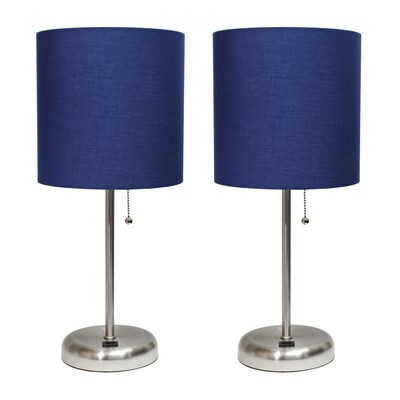 Creekwood Home Oslo Duo 19.5" LED Table Lamp with USB Port, Brushed Steel/Navy Blue Shade, 2/Set (CWT-2012-NV-2PK)