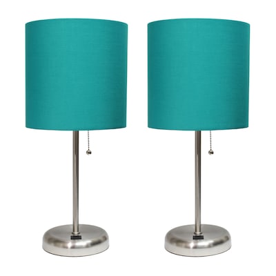 Creekwood Home Oslo Duo 19.5" LED Table Lamp with USB Port, Brushed Steel/Teal Shade, 2/Set (CWT-2012-TL-2PK)
