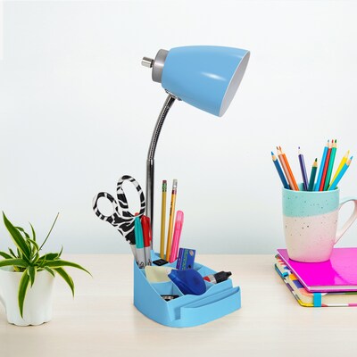 Creekwood Home Sleek Essentials 18.5" Flexible Coordinating Desk Lamp with Charging Outlet and Storage, Blue (CWD-1005-BL)
