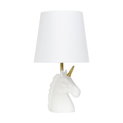 Creekwood Home Whimsilux 15.5" Enchanting Unicorn Dreams Table Lamp, for Playroom, Home Décor, White with Gold Glitter Transform any room into a magical wonderland with the enchanting unicorn dreams table lamp. This whimsical table lamp features a charming unicorn design, complete with a shimmering glitter horn. The white finish adds a touch of elegance, while the glitter accents bring a playful element to the lamp. Whether placed on a bedside table, dresser, or desk, this unicorn table lamp instantly transforms any space into a magical realm, perfect for children's bedrooms, playrooms, or as home décor!
