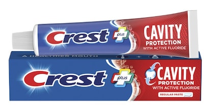 Crest Cavity Protection Toothpaste gives you a cavity treatment that helps take care of your mouth by protecting your teeth and exposed roots. Regular brushing can help protect your teeth and strengthen weak spots to help fight cavities. Plus, it’ll leave your breath feeling fresh.