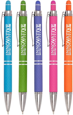 - Matching color touchscreen stylus on the end of the custom retractable pen