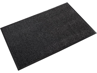 - Rectangular floor mat in charcoal color features an extruded loop pattern