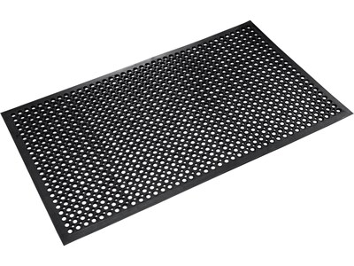 - Heavy-duty floor mat with anti-fatigue properties provides drainage and durability