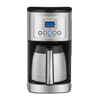 Hotter coffee and brew strength options – the best of both worlds! The Cuisinart® 12 Cup Programmable Thermal Coffeemaker is equipped with cutting edge coffee technology to give you hotter coffee without sacrificing taste. Choose a flavor profile with regular or bold strength control, and set brew-time up to 24-hours ahead. Our backlit LCD is easy-to-read, a ready tone can be turned on or off, and an indicator light signals when it’s time to decalcify.