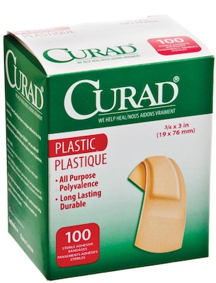 Curad® Adhesive Bandages, 3/4"X3", Plastic, 100/Box, 12 Boxes/Case