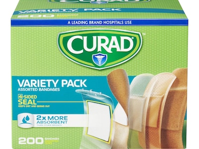 Protect wounds from dirt and germs with this Curad Variety Pack 200-count bandages.
