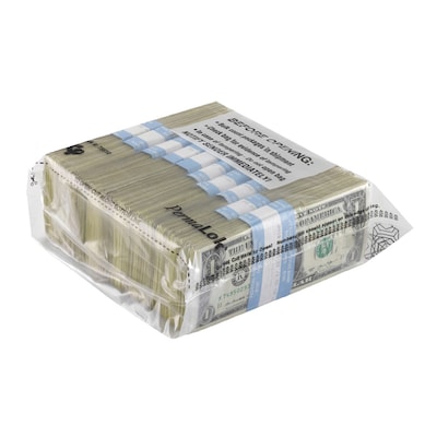 Currency Bag, Black Print, 1,000 Note (10 Strap), 9.375” x 8” x 3” Bottom Gusset, 250/Pk
