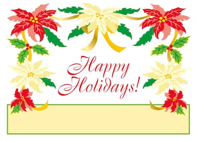 Cursive Happy Holidays Pointsettias Holiday Greeting Cards, With A7 Envelopes, 7" x 5", 25 Cards per Set
