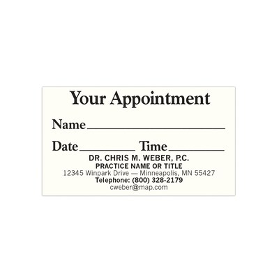 Custom 1-2 Color Appointment Cards, CLASSIC CREST® Natural White 80#, Flat Print, 1 Standard Ink, 1-Sided, 250/Pk