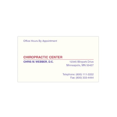 Custom 1-2 Color Appointment Cards, CLASSIC CREST® Natural White 80#, Flat Print, 2 Custom Inks, 1-Sided, 250/Pk
