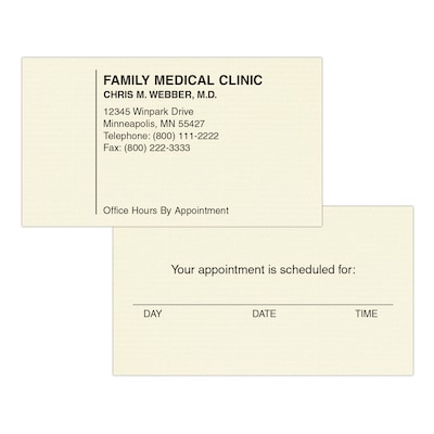 Custom 1-2 Color Appointment Cards, CLASSIC® Laid Baronial Ivory 80#, Flat Print, 1 Standard Ink, 2-Sided, 250/Pk