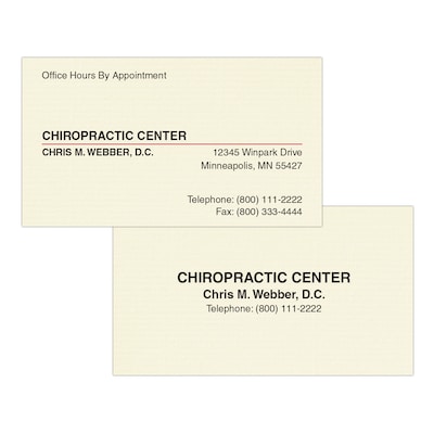 Custom 1-2 Color Appointment Cards, CLASSIC® Laid Baronial Ivory 80#, Flat Print, 2 Standard Inks, 2-Sided, 250/Pk