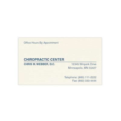 Custom 1-2 Color Appointment Cards, CLASSIC® Laid Natural White 80#, Flat Print, 1 Custom Ink, 1-Sided, 250/Pk