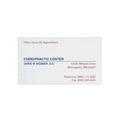 Custom 1-2 Color Appointment Cards, CLASSIC® Laid Solar White 120#, Flat Print, 2 Custom Inks, 1-Sided, 250/Pk