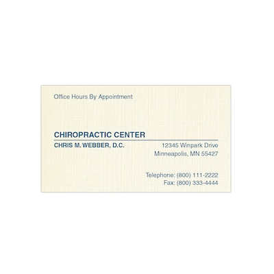 Custom 1-2 Color Appointment Cards, CLASSIC® Linen Baronial Ivory 80#, Flat Print, 1 Custom Ink, 1-Sided, 250/Pk