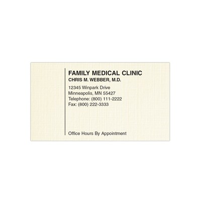 Custom 1-2 Color Appointment Cards, CLASSIC® Linen Baronial Ivory 80#, Flat Print, 1 Standard Ink, 1-Sided, 250/Pk