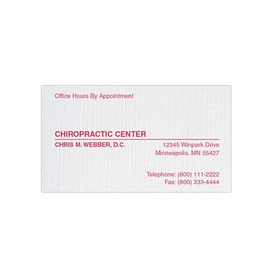 This premium uncoated CLASSIC® branded white appointment card has a texture that is patterned after fine linen fabric and provides a timeless and elegant look