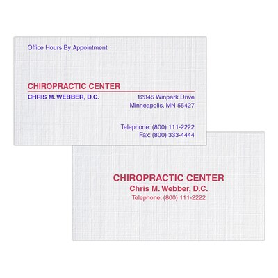 This premium uncoated CLASSIC® branded white appointment card has a texture that is patterned after fine linen fabric and provides a timeless and elegant look