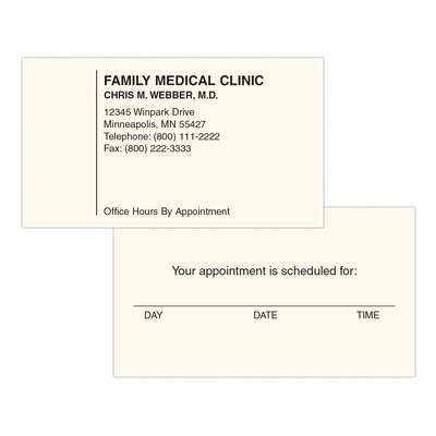• 250 appointment cards per pack