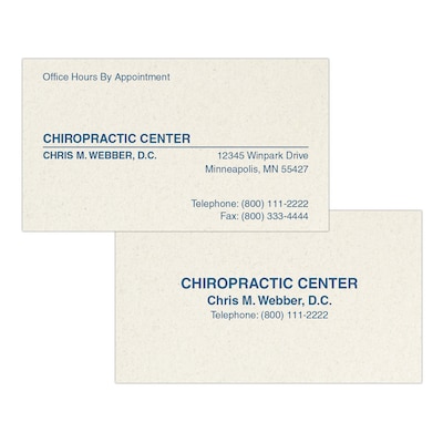 This uncoated appointment card provides a natural look and feel with the light ivory stock and colored flecks and maintains an eco-friendly option with the use of post-consumer fibers