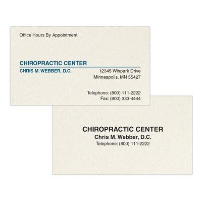 This uncoated appointment card provides a natural look and feel with the light ivory stock and colored flecks and maintains an eco-friendly option with the use of post-consumer fibers