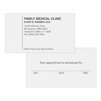 This economical appointment card offers an uncoated, smooth, classic look and feel