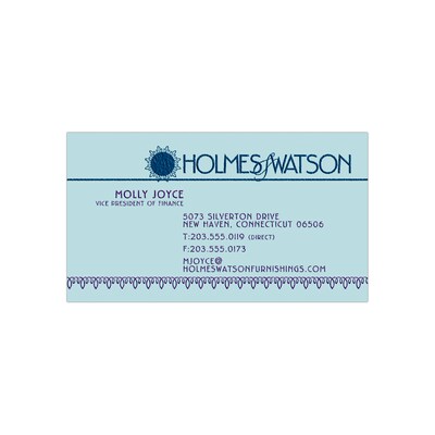 This uncoated blue business card offers a classic and simplistic look while providing a sturdy 110 lb. stock