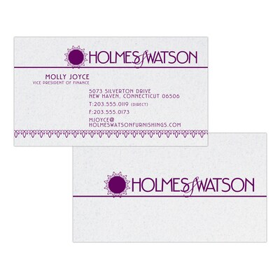 This uncoated CLASSIC CREST® branded business card offers a unique look with the colored fiber flecks but still provides a refined smooth finish, unmatched quality and flawless performance