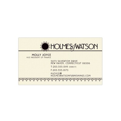 This uncoated business card provides a rich and distinctive look with the CLASSIC® Laid ivory stock