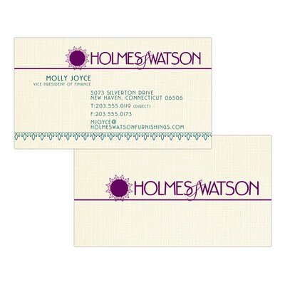 Custom 1-2 Color Business Cards, CLASSIC® Linen Baronial Ivory 80#, Flat Print, 2 Custom Inks, 2-Sided, 250/PK