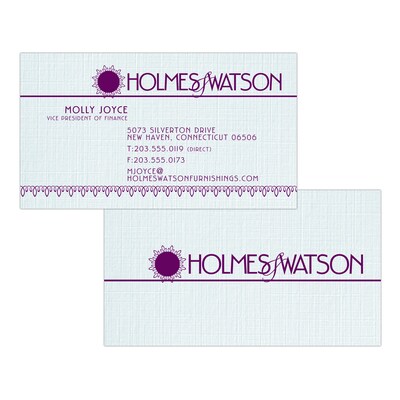 This uncoated CLASSIC® branded light blue business card has a texture that is patterned after fine linen fabric and provides a timeless and elegant look