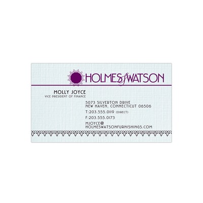 This uncoated CLASSIC® branded light blue business card has a texture that is patterned after fine linen fabric and provides a timeless and elegant look
