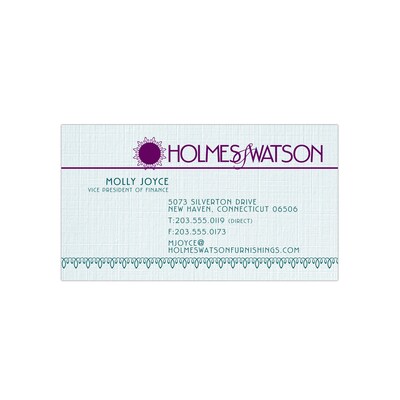 This uncoated CLASSIC® branded light blue business card has a texture that is patterned after fine linen fabric and provides a timeless and elegant look