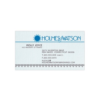 This uncoated CLASSIC® branded light blue business card has a texture that is patterned after fine linen fabric and provides a timeless and elegant look