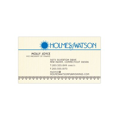 This uncoated CLASSIC® branded natural white business card has a texture that is patterned after fine linen fabric and provides a timeless and elegant look