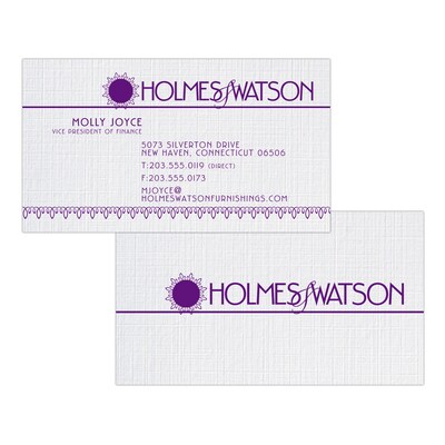 This premium uncoated CLASSIC® branded white business card has a texture that is patterned after fine linen fabric and provides a timeless and elegant look