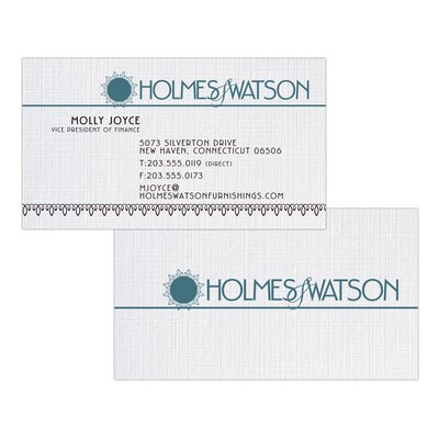 This premium uncoated CLASSIC® branded white business card has a texture that is patterned after fine linen fabric and provides a timeless and elegant look