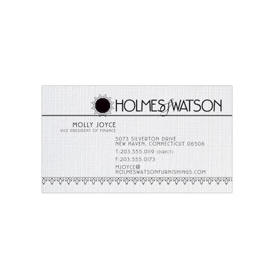 This premium uncoated CLASSIC® branded white business card has a texture that is patterned after fine linen fabric and provides a timeless and elegant look