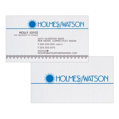 This premium uncoated CLASSIC® branded white business card has a texture that is patterned after fine linen fabric and provides a timeless and elegant look