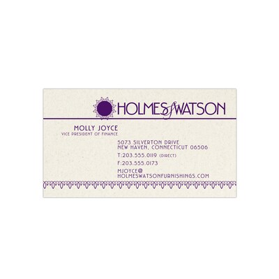 This uncoated business card provides a natural look and feel with the light ivory stock and colored flecks and maintains an eco-friendly option with the use of post-consumer fibers