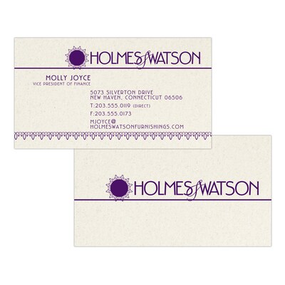 This uncoated business card provides a natural look and feel with the light ivory stock and colored flecks and maintains an eco-friendly option with the use of post-consumer fibers