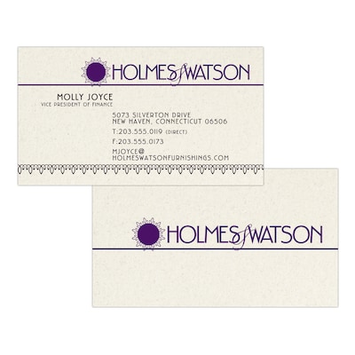 This uncoated business card provides a natural look and feel with the light ivory stock and colored flecks and maintains an eco-friendly option with the use of post-consumer fibers