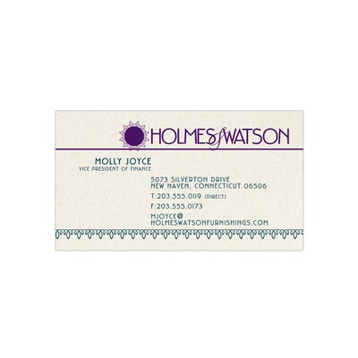 This uncoated business card provides a natural look and feel with the light ivory stock and colored flecks and maintains an eco-friendly option with the use of post-consumer fibers