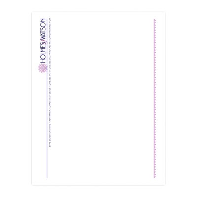 Custom 1 & 2 Color Letterhead, 8.5" x 11", CLASSIC CREST® Solar White 24# Stock, 2 Custom Inks, Flat Print