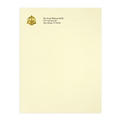 Custom 1 & 2 Color Letterhead, 8.5" x 11", CLASSIC® Laid Baronial Ivory 24#, Foil & 1 Standard Ink, Flat Print, Medical Logo 203