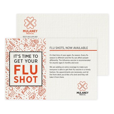 - 4" x 6", printed 2-sided, available in both vertical and horizontal orientation.